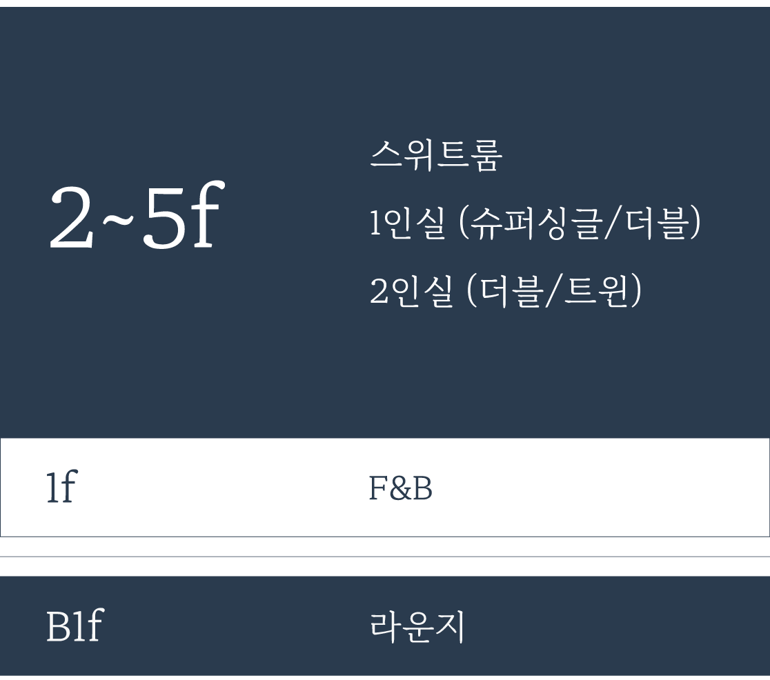슈퍼 싱글(1인), 더블(최대2인), 트윈(2인) 총 3가지 타입으로 구성되어 있습니다.